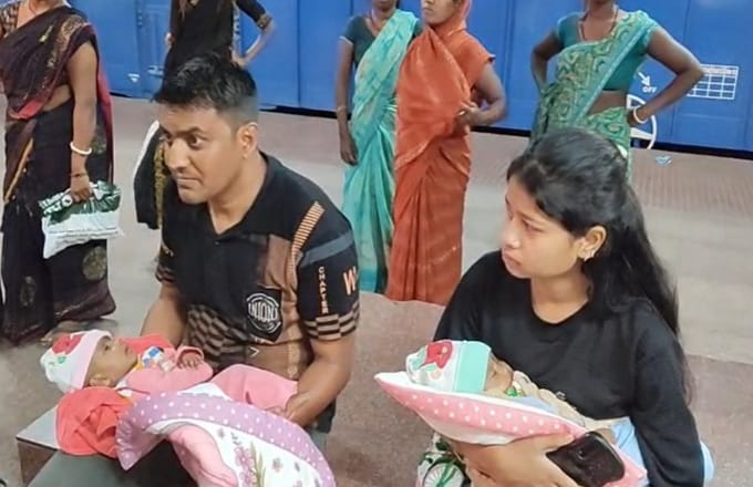 महिला जवान की निगरानी में है बच्चे