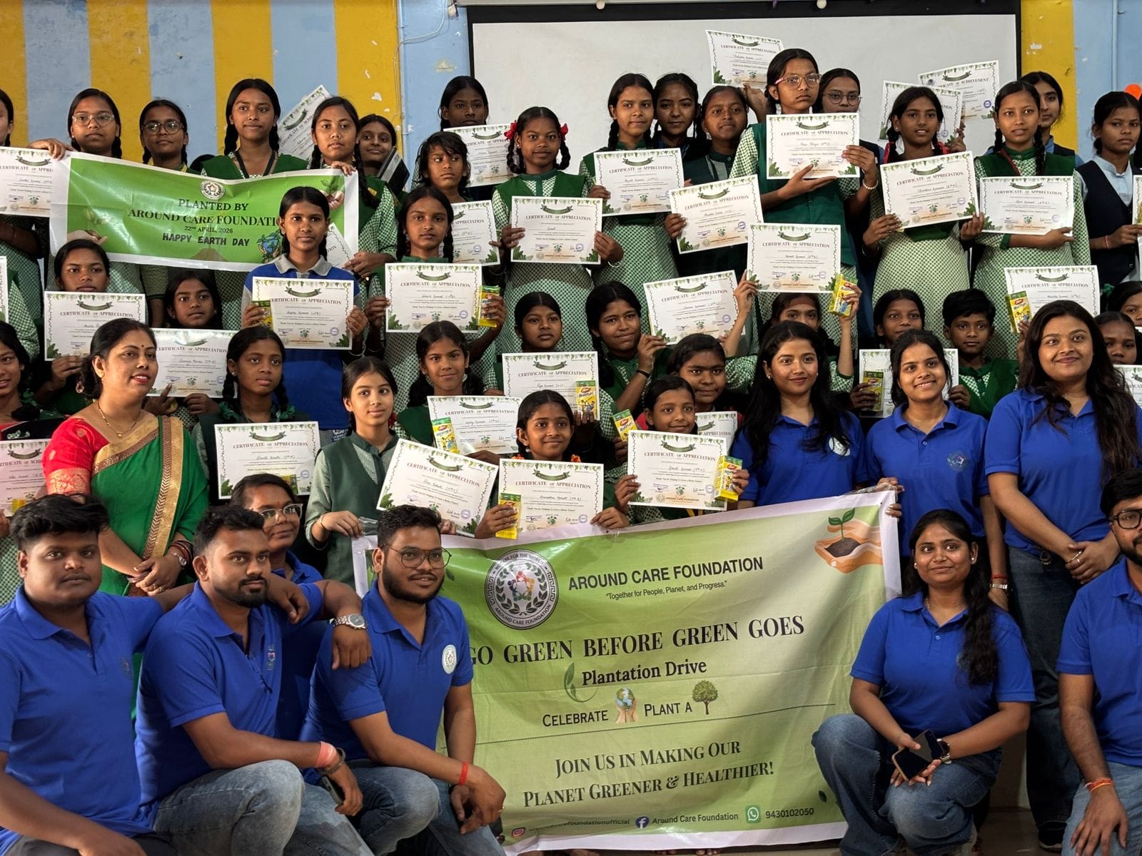 अराउंड केयर फाउंडेशन की ओर से इस कार्यक्रम में सचिव रोहित शाह, टिंकू, ऋषि, सूरज , विकास, मुस्कान, स्वाति, काजल, सुधांशु, शुभी, चिरंजीवी, सरोज, सचिन, संदीप , विकाश ,निशा रानी, रिटायर्ड एयरफोर्स संजय जी एवं अन्य सदस्यों ने सक्रिय भूमिका निभाई। इस मौके पर लोगों ने संकल्प लिया कि “पृथ्वी हमारी माँ है, और इसकी रक्षा करना हमारा कर्तव्य। आज एक पौधा लगाएं, कल एक बेहतर भविष्य पाएं। आइए हम सभी मिलकर अपनी धरती को हरा-भरा, स्वच्छ और सुरक्षित बनाने का संकल्प लें।”