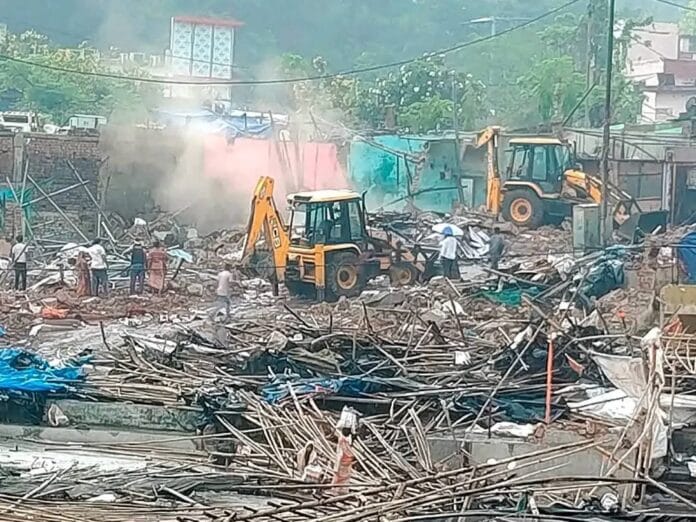 रामगढ़ : रजरप्पा स्थित मां छिन्नमास्तिका प्रक्षेत्र में गुरुवार को अतिक्रमण के खिलाफ प्रशासन ने अभियान चला दुकानों को ध्वस्त किया। गुरुवार को अतिक्रमण हटाने का काम पूरा नहीं हो पाया, शुक्रवार को भी दुकानों में बुलडोजर चलेगा, जिसमें अतिक्रमित की गई दुकानों को हटाया जाएगा। बताया जा रहा है कि मंदिर प्रक्षेत्र के विस्तारीकरण और उसके सौंदर्यीकरण को लेकर ही अवैध अतिक्रमण के खिलाफ प्रशासन की कार्रवाई की गई है।